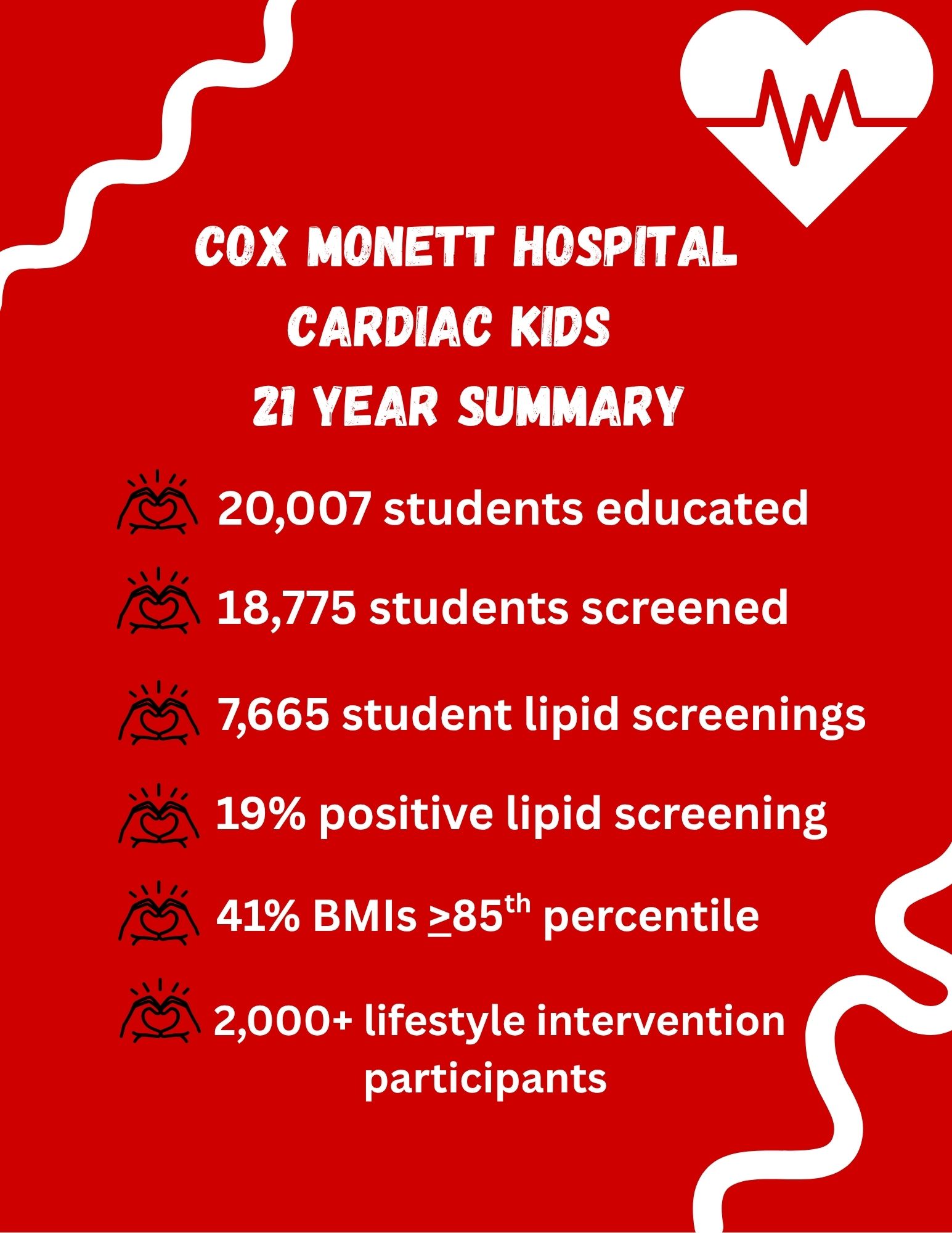Coronary Artery Risk Detection in Area Children (CARDIAC) Kids is a cholesterol screening program that identifies Barry and Lawrence County 5th- and 6th-grade students at risk for heart disease and diabetes.