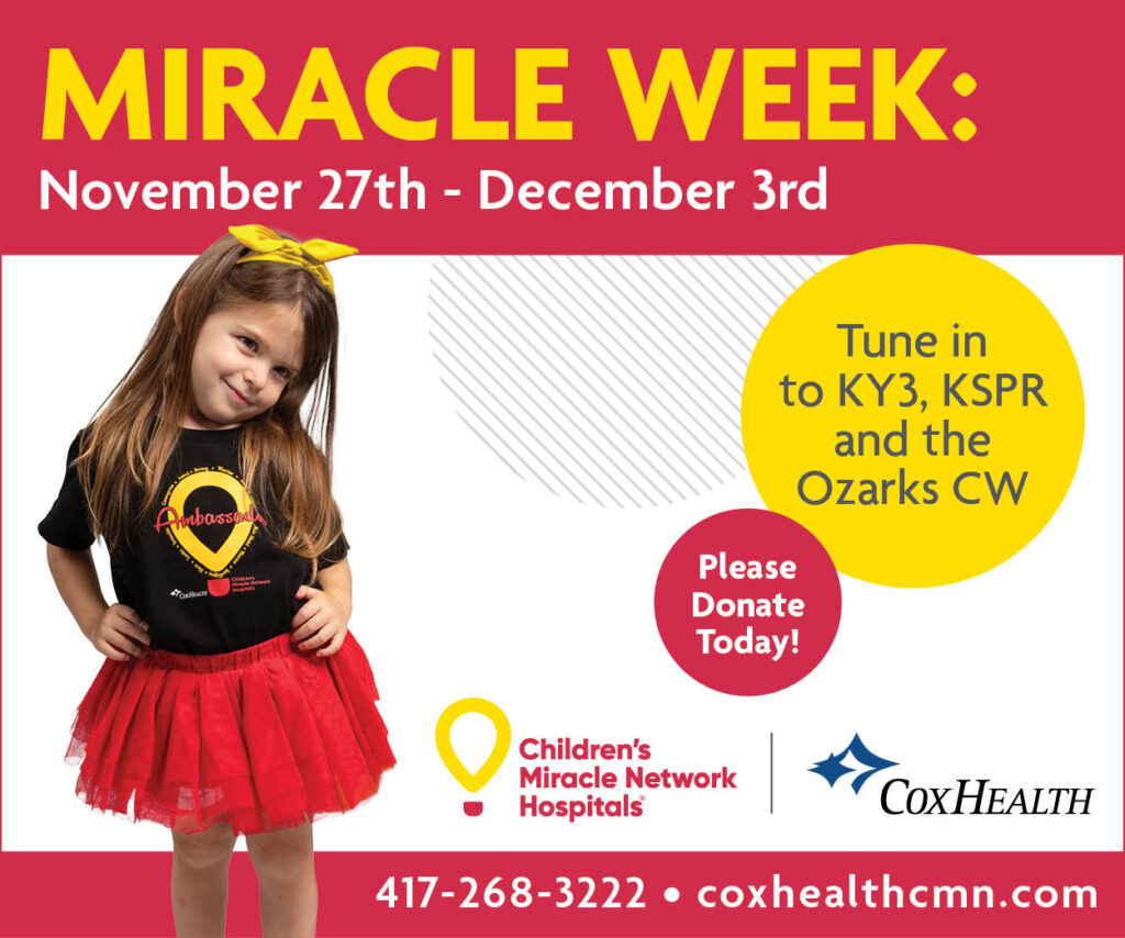 “Miracle Week is special for us every year because it provides a wonderful opportunity to share stories from local patients who were directly impacted by the generosity of donors,” says Tim Siebert, executive director of CMN Hospitals at CoxHealth. “The donations made during Miracle Week support children and families at all stages of their care journey. We want to do all we can to help ease these and other health related burdens so local children can thrive.”
